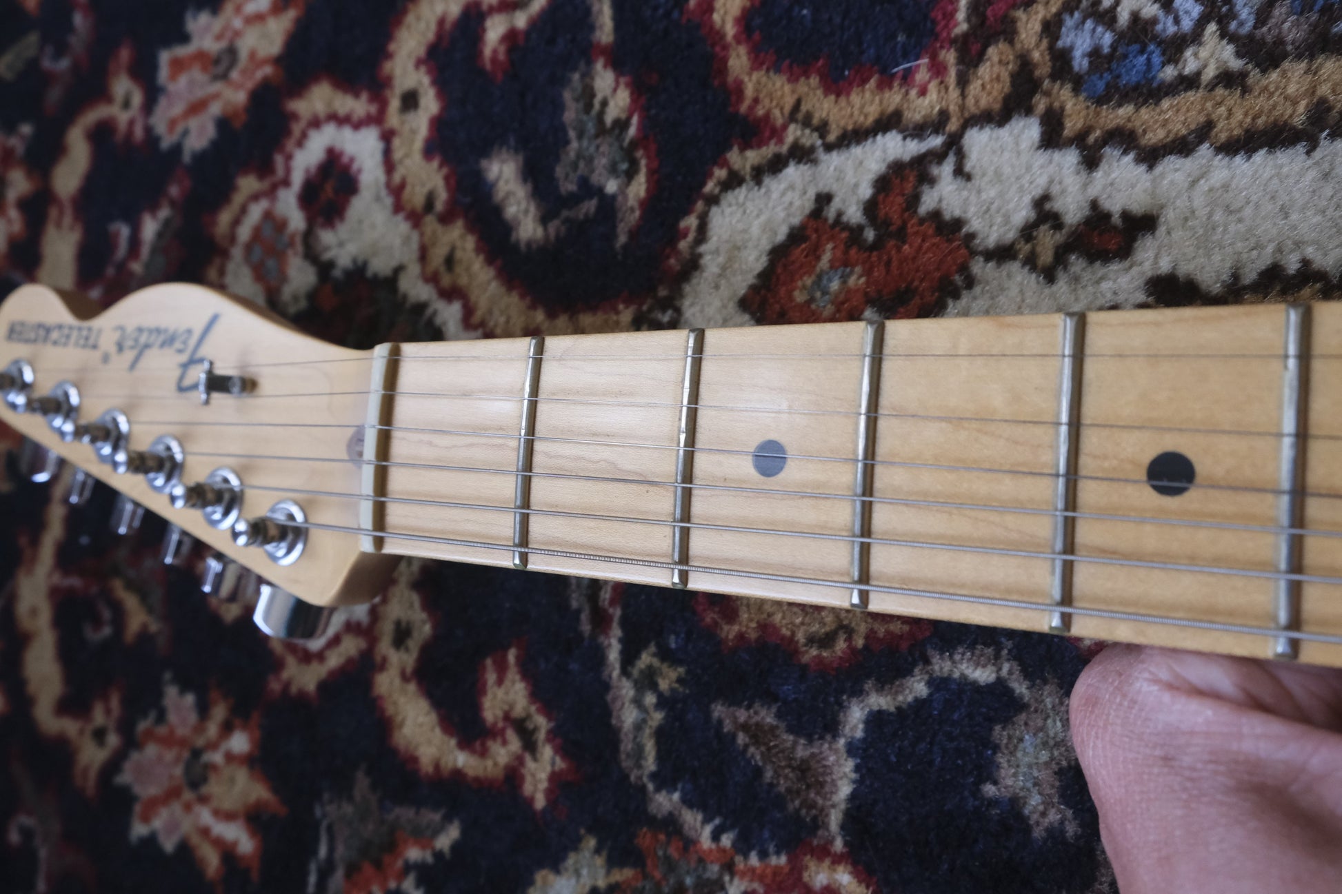 The condition is excellent. There are two points where the guitar differs from mint condition: The frets show very little wear, and there are some of the lightest scratches on the back, which can only be seen from a specific light. The rest of the guitar is in pristine condition. The pictures are made as accurately as possible to give the best impression of the condition.