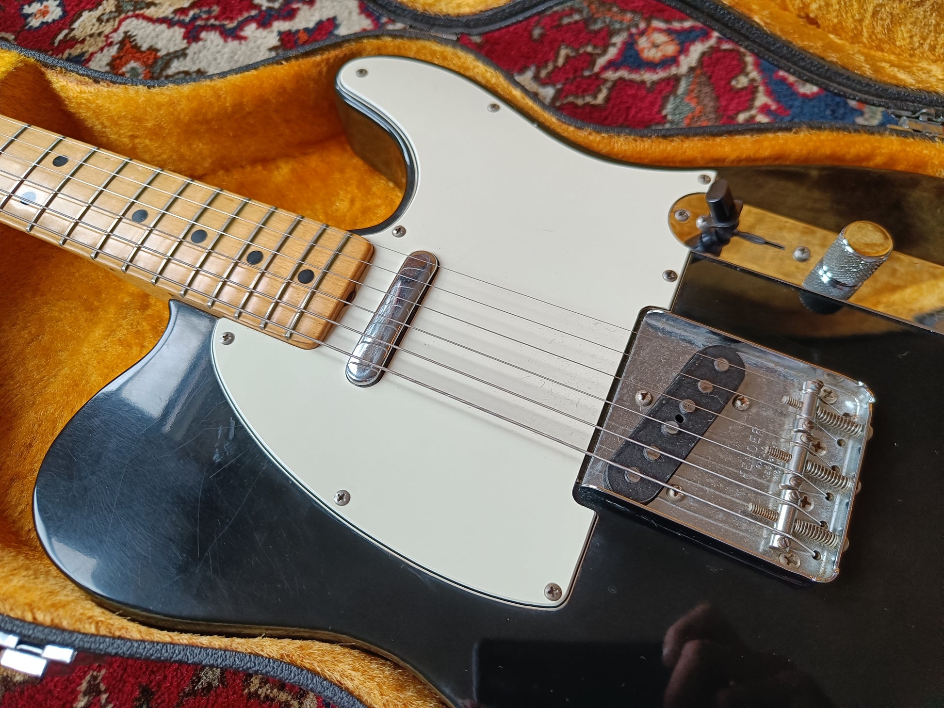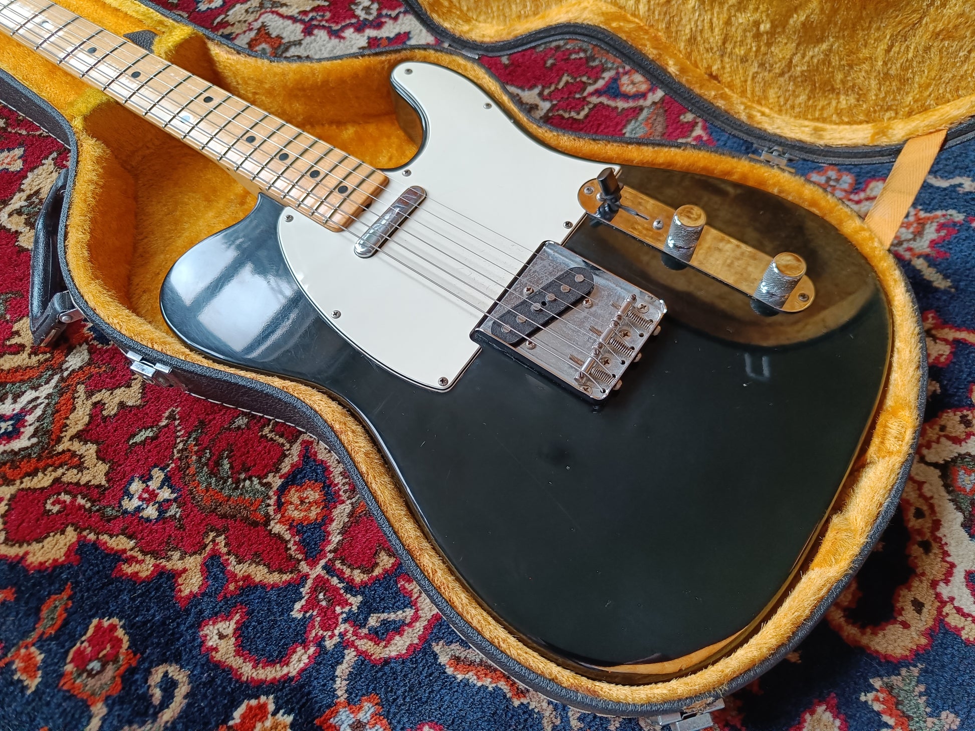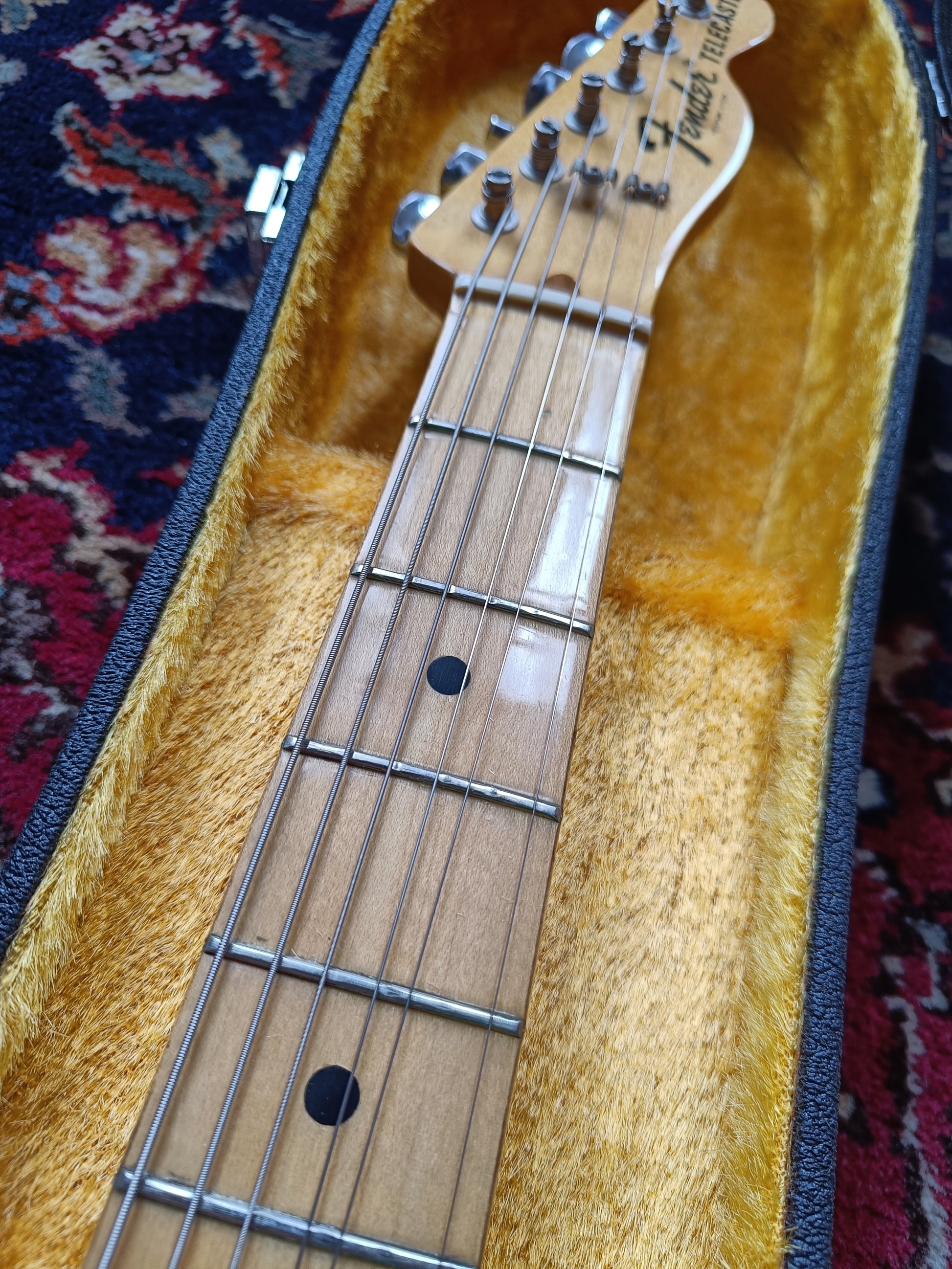 The condition is excellent, and the guitar is all original. The body shows some minimal cool natural relic along the edges where the wood peeks through, giving it a unique, smooth feel that won’t affect your playing. The electronics date to the 49th week of 1973, and the frets, which also appear original, show barely any wear. The Tele weighs 4.3 kilograms and is free from any repairs or damage.