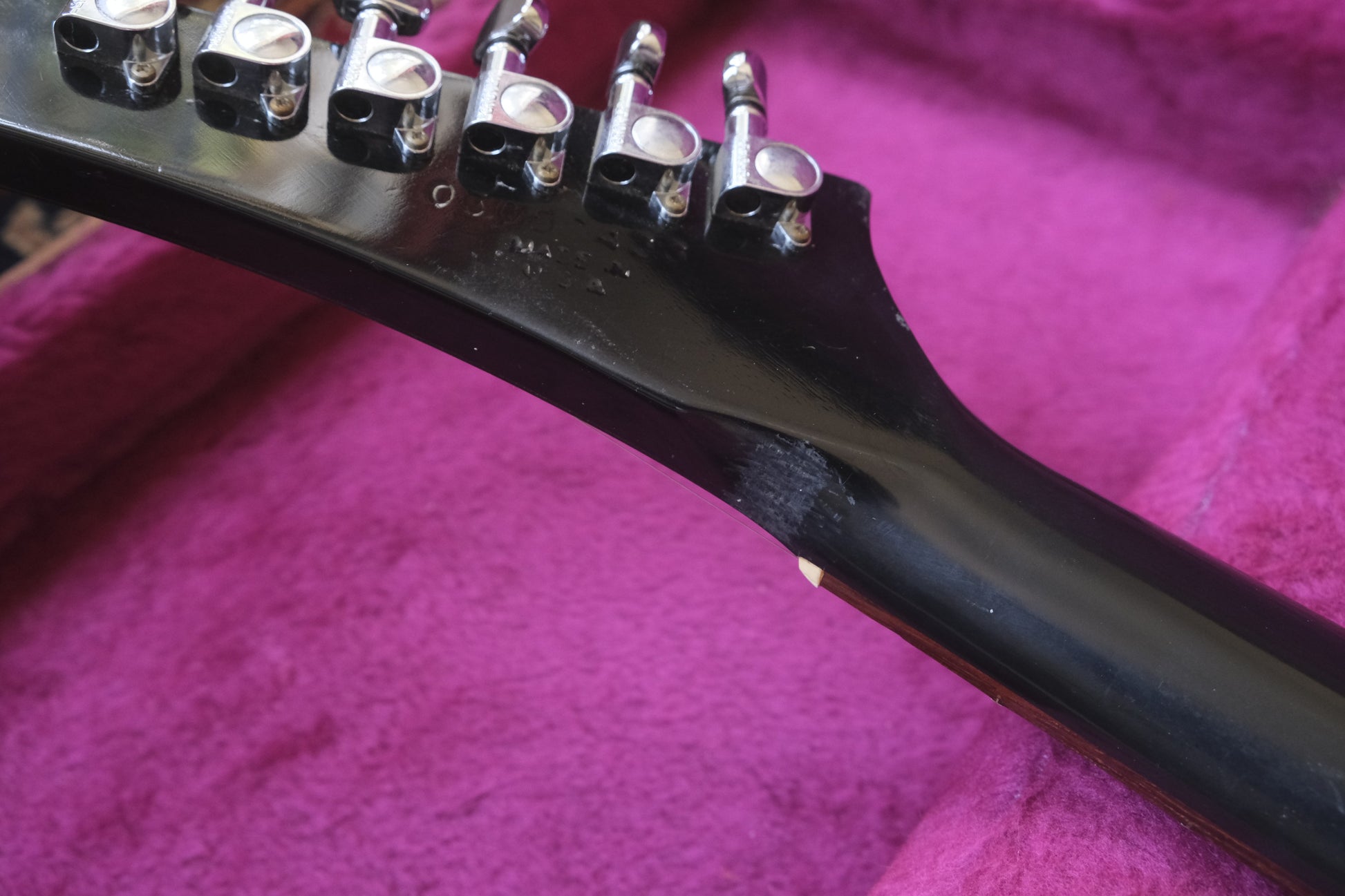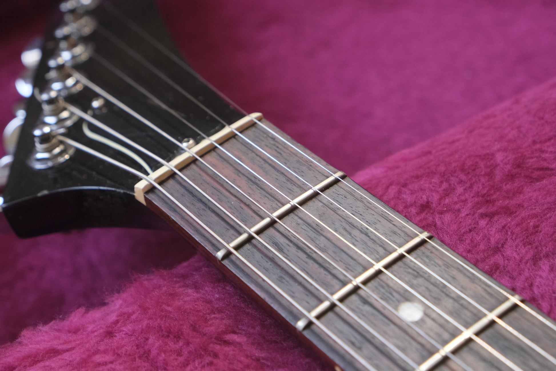 The condition is very good. One noticeable thing is the spots in the lacquer, which are caused by the old guitar strap. The lacquer reacted to the material of the strap. It doesn't bother, and certainly gives a particular impression that suits the guitar. The frets are in great shape. There are some more user marks on the body. The guitar never had a head crack or a repair. The pictures are taken as accurately as possible to provide an exact impression of the guitar's condition.